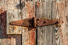 USA, Vermont, Newbury. Connecticut River Valley, weathered barn with peeling red paint.