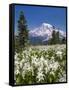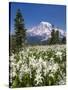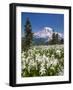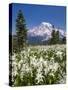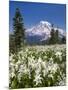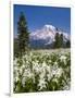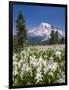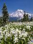 USA, Washington, Mount Rainier NP. Avalanche Lilies and Mount Rainier