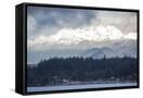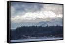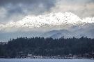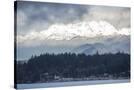 USA, Washington. Olympic Mountains behind Brownsville Marina.