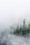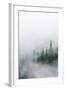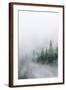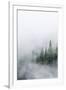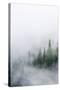 USA, Washington State. Mount Rainier National Park, Fir Trees in Clouds Photo Print
