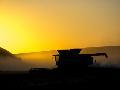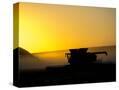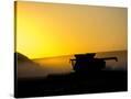 USA, Washington State, Palouse. Combine harvesting at sunset