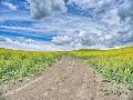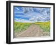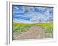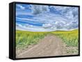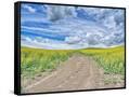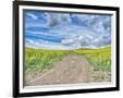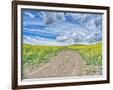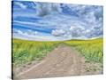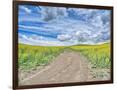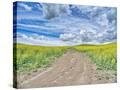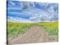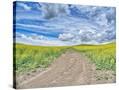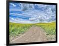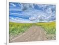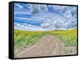 USA, Washington State, Palouse, Country Backroad through Spring canola fields Photo Print