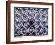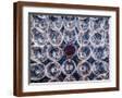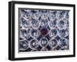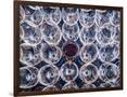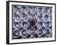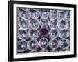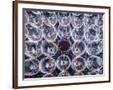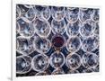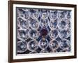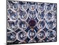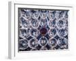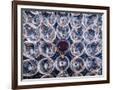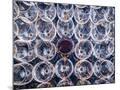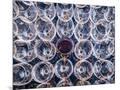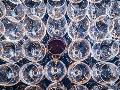 USA, Washington State, Seattle. One glass of red wine in a row of wine glasses.