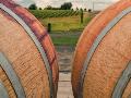 USA, Washington, Walla Walla. Barrels in Walla Walla wine country.