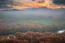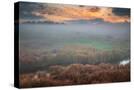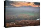 USA, West Virginia, Davis. Fog over stream in valley at sunrise.