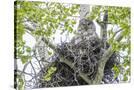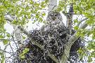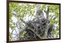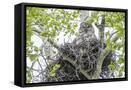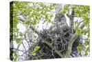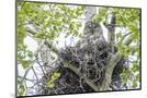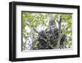 USA, Wyoming, Grand Teton National Park, Great Gray Owl sits on her stick nest