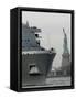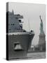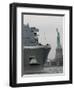 USS New York Passes the Statue of Liberty While Fireboats Spray Water in New York