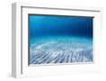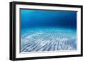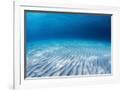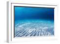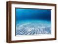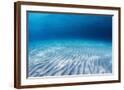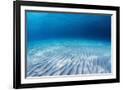 Underwater Shoot of an Infinite Sandy Sea Bottom with Clear Blue Water and Waves on its Surface