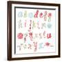 Unique Vector Flower Font. Amazing Hand Drawn Alphabet. Wall Art Print
