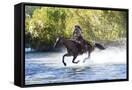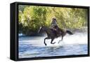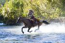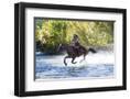 Usa, Wyoming, Shell, The Hideout Ranch, Cowgirl Riding Horse Across River