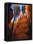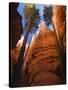 Utah, Bryce Canyon National Park, Douglas Fir Trees in Slot Canyon, USA