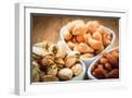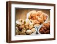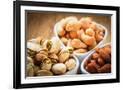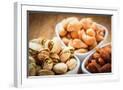 Varieties of Nuts: Cashew, Pistachio, Almond.