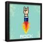 Vector Flat Pixel Rock N Roll Icon with Fire Wall Art Print