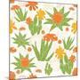 Vector Green Golden Succulents Seamless Pattern Wall Art Print