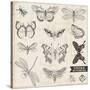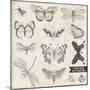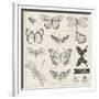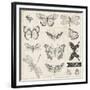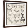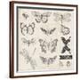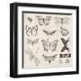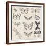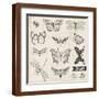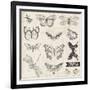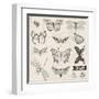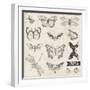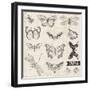 Vector Set: Calligraphic Hand Drawn Butterflies - for Design and Scrapbook - in Vector Wall Art Print