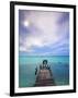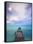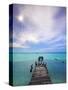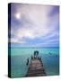 Venezuela, Archipelago Los Roques National Park, Madrisque Island, Pelicans on Pier