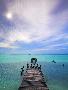 Venezuela, Archipelago Los Roques National Park, Madrisque Island, Pelicans on Pier