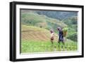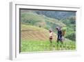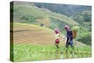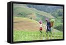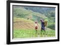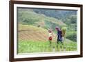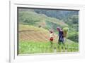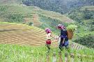 Vietnam. Grandma taking care of granddaughter. Farming community with traditional Sapa dresses.