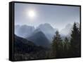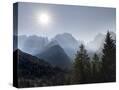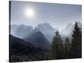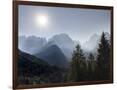 View from Val Rendena towards the Brenta Dolomites. Italy, Trentino, Val Rendena Photo Print