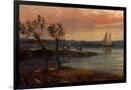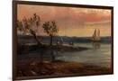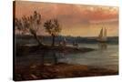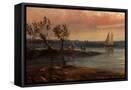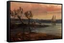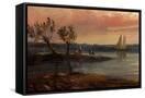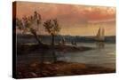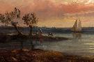 View of an Estuary with Fishermen and an Imaginary Castle, 1848 (Oil on Copper)