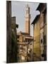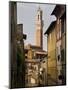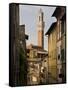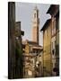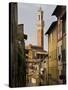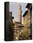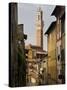 View of the Torre Del Mangia and Old Streets in Siena, Tuscany, Italy, Europe