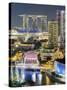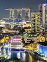 View over Entertainment District of Clarke Quay, Singapore River and City Skyline, Singapore