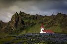 Vik Church and Lupine Flowers, South Region, Iceland, Polar Regions