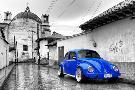 ¡Viva Mexico! B&W Collection - Royal Blue VW Beetle Car in San Cristobal de Las Casas