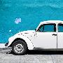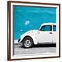 ¡Viva Mexico! Square Collection - White VW Beetle Car & Blue Wall