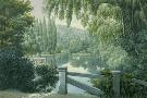 Vue de Malmaison : promenade des dames d'honneur sur la rivière.
