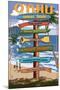 Waikiki Beach, Hawaii - Signpost Destinations Wall Art Print
