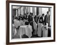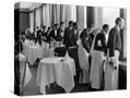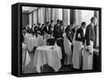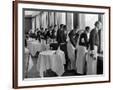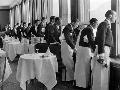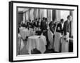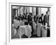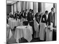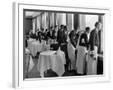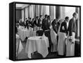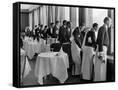 Waiters in the Grand Hotel Dining Room Lined Up at Window Watching Sonia Henie Ice Skating Outside