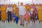 Wall Mural of Kim Il Sung, Pyongyang, Democratic People's Republic of Korea, N. Korea