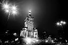 Warsaw, Poland Downtown Skyline At Night In Black And White