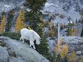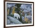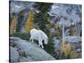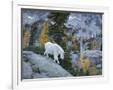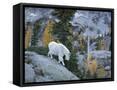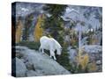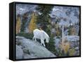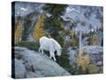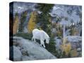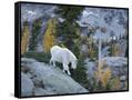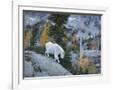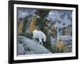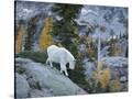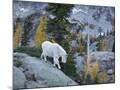 Washington, Adult Mountain Goat Steps Down a Rock Face in the Alpine Lakes Wilderness Photo Print