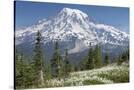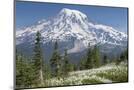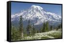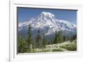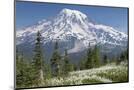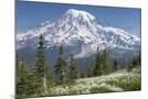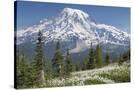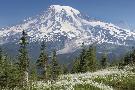 Washington, Mount Rainier National Park. Avalanche Lilies and Mount Rainier