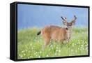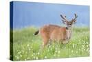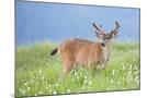 Washington, Olympic National Park. A Black-Tailed Buck in Velvet Feeds on Subalpine Wildflowers