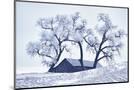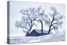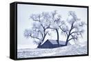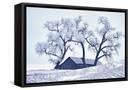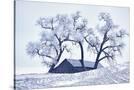 Washington, Palouse, Snow Covered Barn with Old Oak Tree