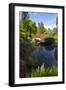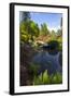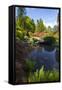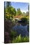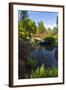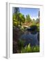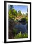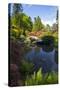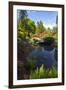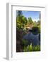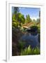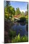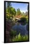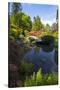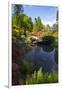 Washington, Seattle, Kubota Gardens, Spring Flowers and Moon Bridge in Reflection Photo Print