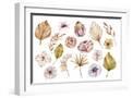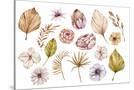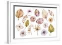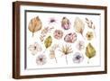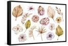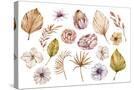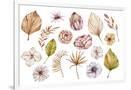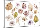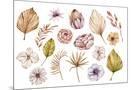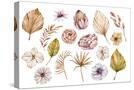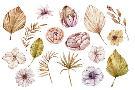 Watercolor Hand Painted Boho Flowers and Leaves Clipart, Individual Elements of Roses, Dried Leaves