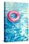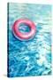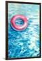 Watercolor Swimming Pool Illustration with Floating Ring and Sparkling Water