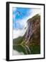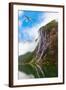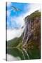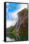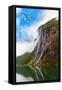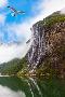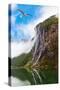 Waterfall in Geiranger Fjord Norway - Nature and Travel Background