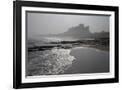 Waves Breaking at Bamburgh Beach Looking Towards Bamburgh Castle on a Misty Morning