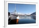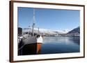 Whaler in Tromso Harbour with the Bridge and Cathedral in Background Photo Print