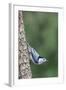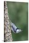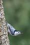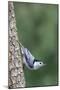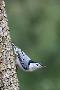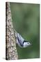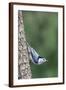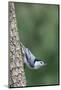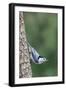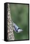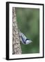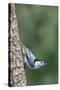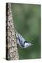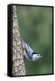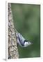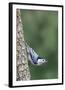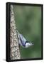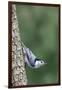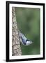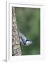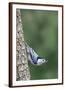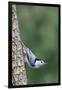 White-Breasted Nuthatch Perching on Tree Trunk Photo Print