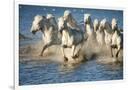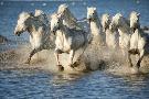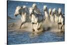White Horses of Camargue, France, Running in Blue Mediterranean Water