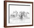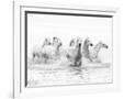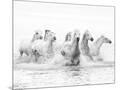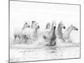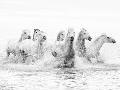 White Horses of Camargue Running Through the Water, Camargue, France
