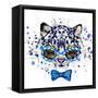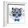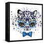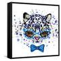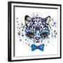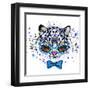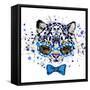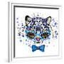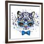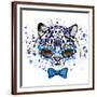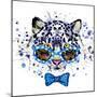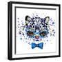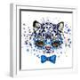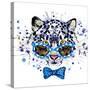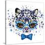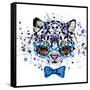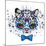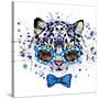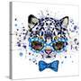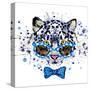 White Leopard T-Shirt Graphics. Cool Leopard Illustration with Splash Watercolor Textured Backgrou Wall Art Print
