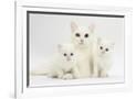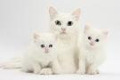 White Maine Coon-Cross Mother Cat, and Her White Kittens