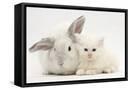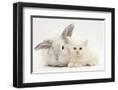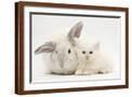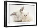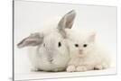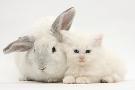 White Maine Coon Kitten Sleeping Next to a White Rabbit